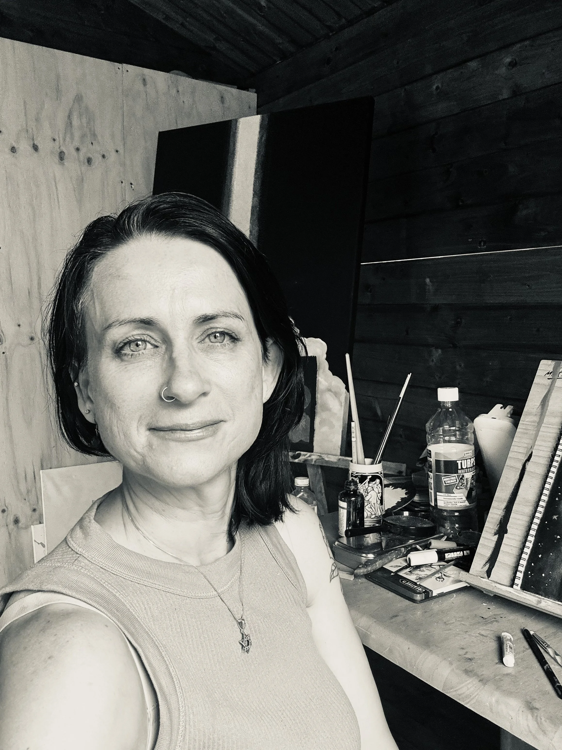 Emily is a multidisciplinary artist whose practice explores the intersection of the internal landscape and the natural world. Inspired by the beauty and curiosities of the world, Emily’s work navigates themes of transformation, impermanence and embodied experience, expressed through symbolic and quietly surreal imagery. Guided by an intuitive and meditative process, she creates pieces that invite sustained contemplation and emotional resonance.Emily completed a Bachelor of Arts (Honours) at the ANU Canberra School of art in 2003 and has exhibited in both solo and group exhibitions across Australia and internationally. Currently based in regional NSW, Emily’s practice is informed by a close connection to place, seasonal cycles and the subtle interplay between destruction, preservation and renewal.