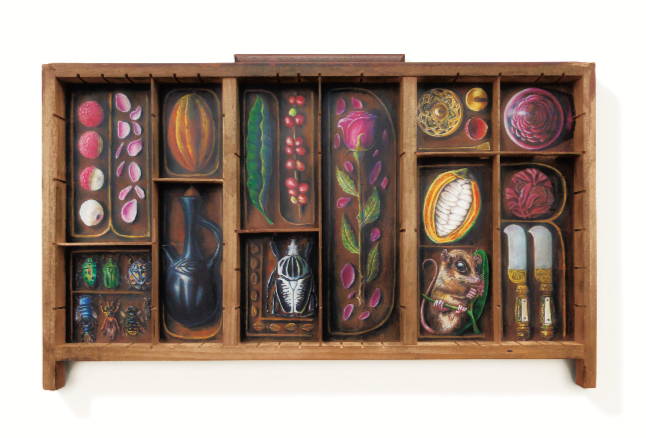 Rory Walker approaches this flavour pairing as a contemporary wunderkammer, a cabinet of curiosities where individual elements are collected, framed and contemplated. Inspired by the segmented nature of the dish, the artwork separates each component into distinct “wonders,” inviting viewers to consider them individually before understanding them as a unified whole.
